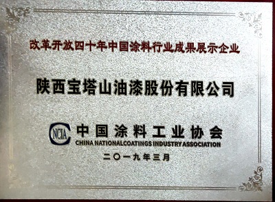 2019年3月,,寶塔山漆被中國涂料工業(yè)協(xié)會(huì)評為“改革開放四十周年中國涂料行業(yè)成果展示企業(yè)”