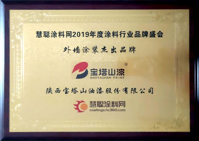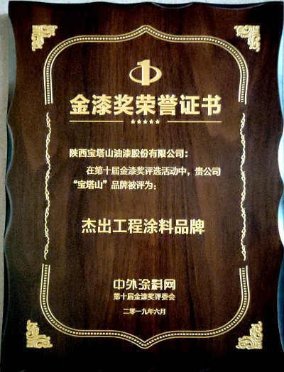 2019年6月,寶塔山漆的“寶塔山”品牌在中外涂料網(wǎng)第十屆金漆獎(jiǎng)評選活動(dòng)中被評為“杰出工程涂料品牌”