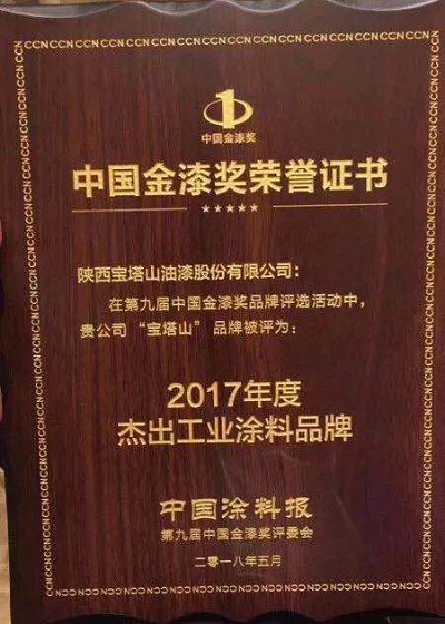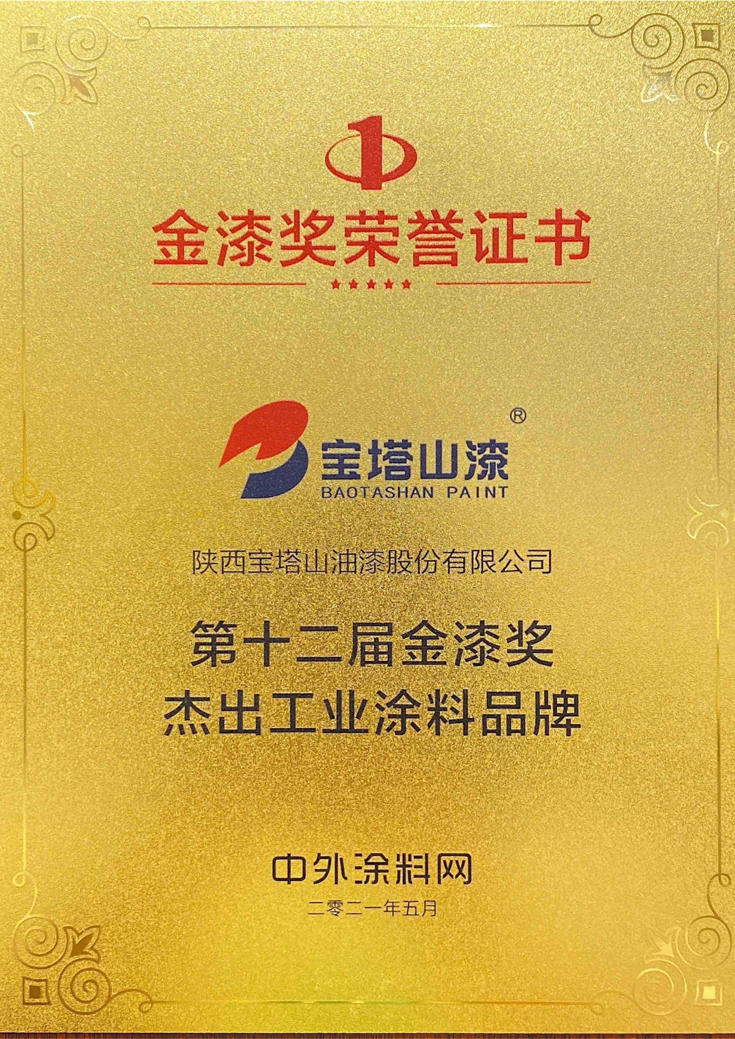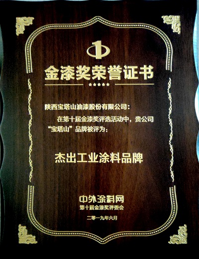 2019年6月,寶塔山漆的“寶塔山”品牌在中外涂料網(wǎng)第十屆金漆獎(jiǎng)評選活動(dòng)中被評為“杰出工業(yè)涂料品牌”