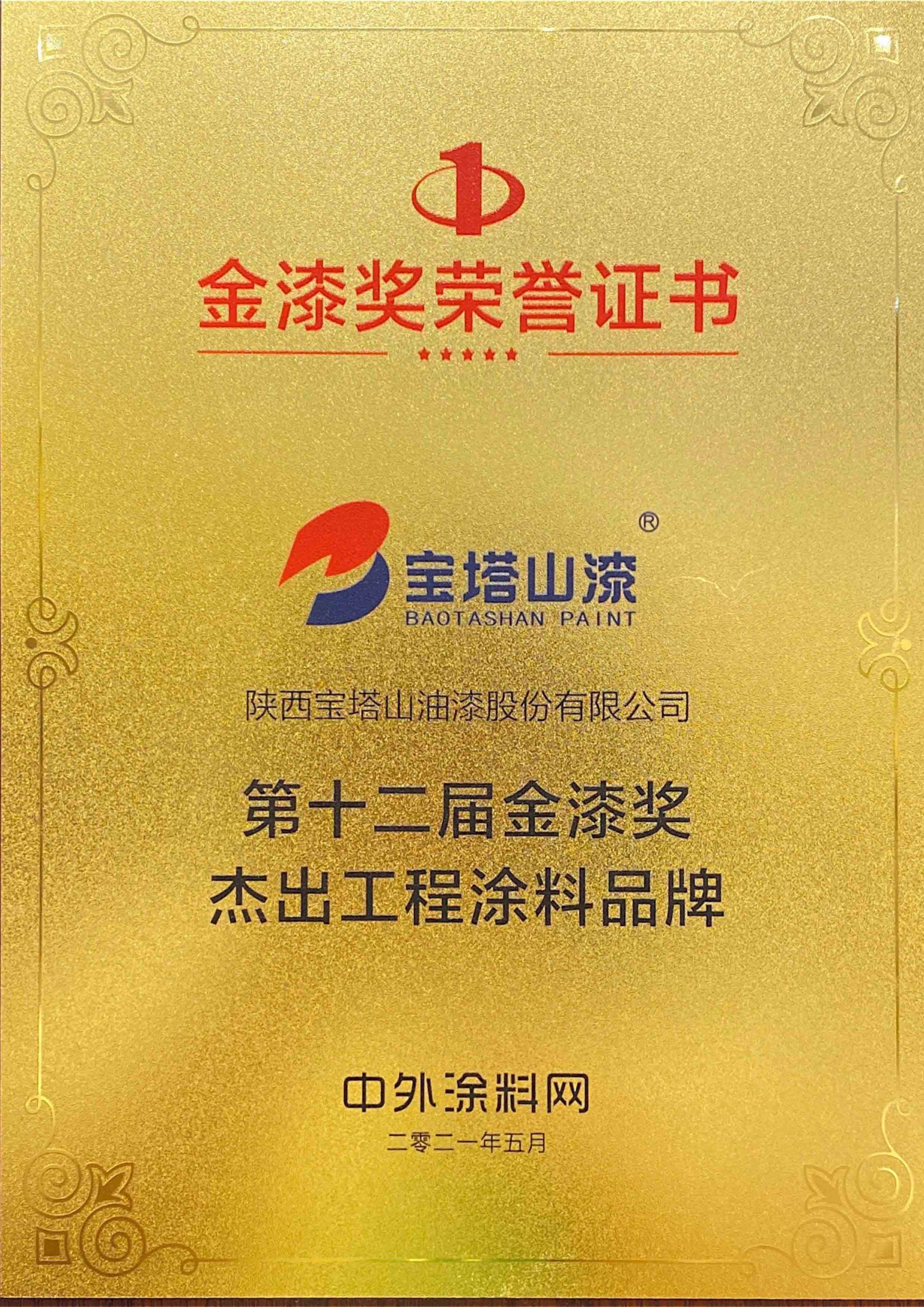 2022年6月,寶塔山漆榮獲第十三屆金漆獎(jiǎng)“杰出工程涂料品牌”。