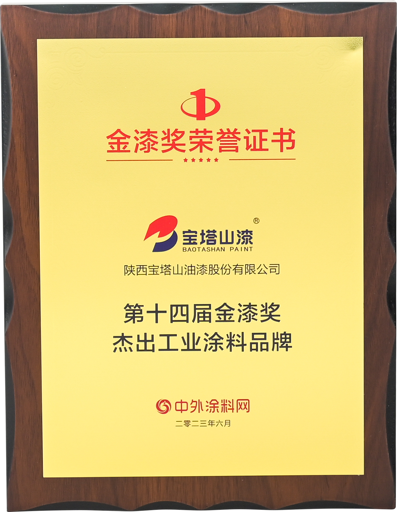 2022年6月,寶塔山漆榮獲第十三屆金漆獎(jiǎng)“杰出工業(yè)涂料品牌”。